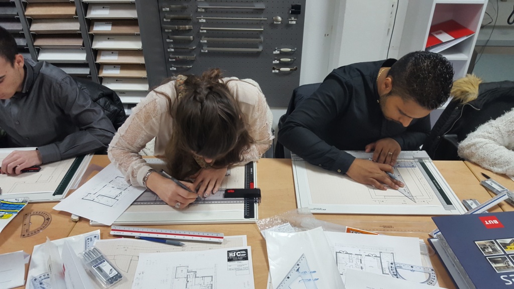 1 ère semaine: formation conception agencement, plan technique, chiffrage cuisine.